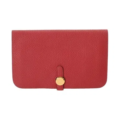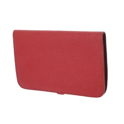 Pre-owned Dogon Vermilion Togo Leather Long Wallet (bi-fold) () In Red