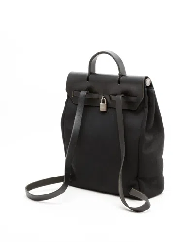 HERMÈS Herbag Backpack- Black canvas with black leather trim- Silver-tone hardware- Top handle and dual shoulder straps- Unlined interior with one slip pocket- Flap with pull-through closure- VintageDelivered with padlock, keys and clochetteMade in FranceSerial number: Square C (1999)Dimensions:Height 36 cmWidth 29 cmDepth 11 cmHandle drop 6 cmPlease note that the majority of our items are vintage and therefore have tales to tell unless stated otherwise. Therefore, please look at pictures, descriptions and measurements provided as they give you the best idea of the story this item has to tell.* Please note that when you buy a vintage product, the dimensions may vary slightly from a new one depending on previous care and storage.