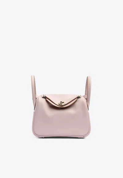 HERMES Mini Lindy 20 Verso In Mauve Pale And Gold Swift Leather In Palladium Hardware