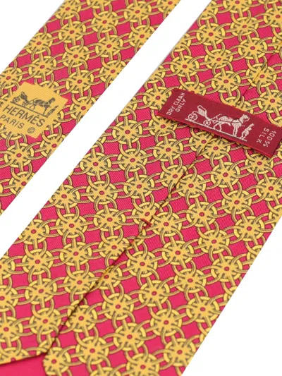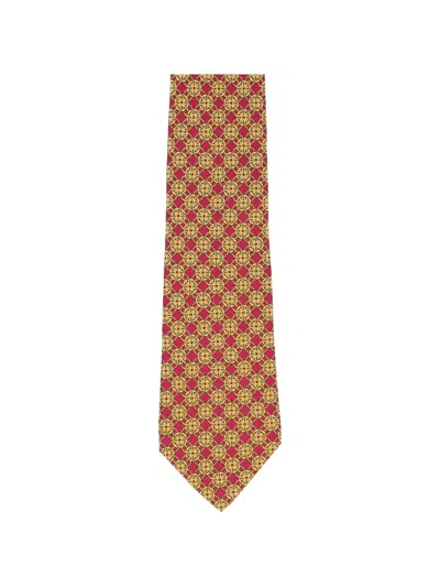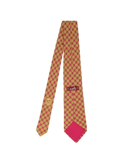 Pre-owned Patterned Geometrical Silk Tie In Red