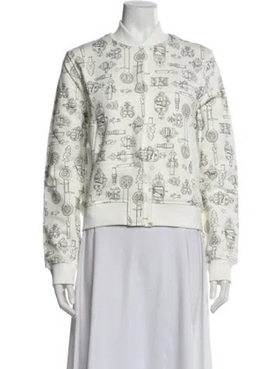 Hermès Jacket White Printed Stand Collar Flap Pockets & Button Closure Fit: Jackets by Hermès typically fit true to size. | Hermès Printed Jacket w/ Tags in White, Women's US6, FR38 | M