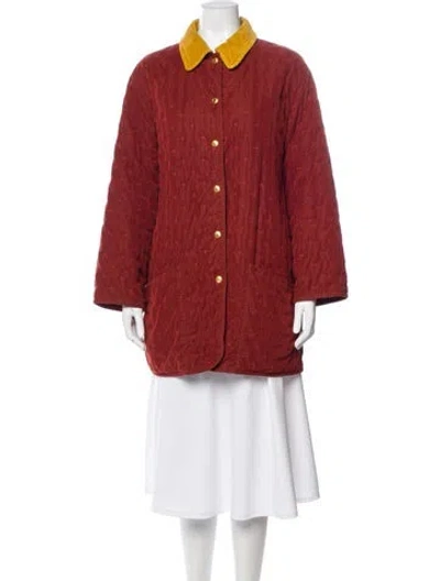 Hermès Peacoat Orange & Yellow Printed Embroidered Accent & Pointed Collar Short Slit Pockets & Snap Closure Fit: Coats by Hermès typically fit true to size. | Hermès Printed Peacoat in Orange/Yellow, Women's US10, FR42 | L