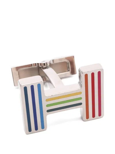 silver-tone h design rainbow stripes Condition: EXCELLENT. This previously owned item is in near-perfect condition with no signs of damage or use.