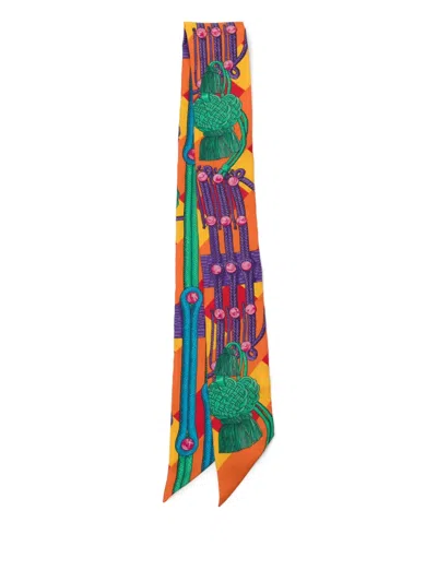 Pre-owned Silk Cord Printed Silk Twilly In Orange