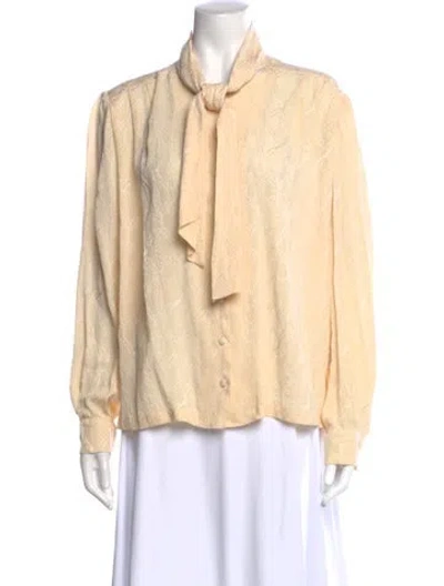 Hermès Silk Blouse Neutrals Patterned Long Sleeve with Tie Neck Button Closure at Front Fit: Tops by Hermès typically fit true to size. | Hermès Silk Patterned Blouse in Neutrals, Women's US14, FR46 | XL