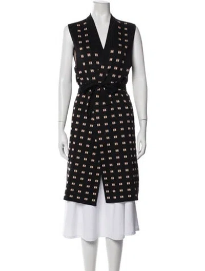 Hermès Silk Tunic Black & Brown Printed Sleeveless with V-Neck Sash-Tie Closure at Front Fit: Knitwear by Hermès typically fit true to size. | Hermès Silk Printed Sweater in Black/Brown, Women's US6, FR38 | M