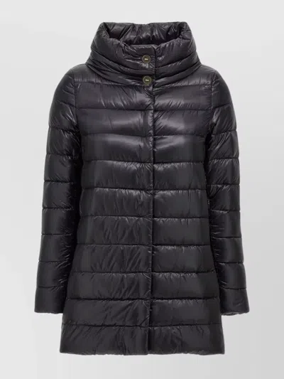 Amelia down jacket in Ultralight 200 gr. nylon with goose feather padding, button closure, pockets, crater collar, long sleeves. Composition: 100% polyamide