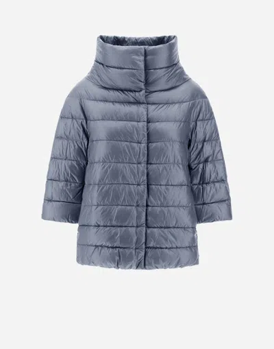 I came to be at the water's edge, snow-topped mountains rising up behind me. My name, almost majestic, comes from the stunning villas around Lake Maggiore, just like my sisters' names. I am Aminta, the very first in the line of elegant down jackets. A ¾-length sleeved cape in the unmistakable Herno style, made from 200 g Ultralight nylon. The injected padding in ultra-fine goose down and the silky-effect nylon make the garment extremely lightweight and delicate to the touch. Oversize fit Funnel neck Concealed press-stud fastening ¾-length sleeves Welt pockets Performance: WR Treatment Herno Icons 100% PA - MAIN FABRIC: 100% POLYAMIDE / NYLON LINING: 100% POLYAMIDE / NYLON TRIMMING: 55% COTTON 45% POLYESTER PADDING (FEATHER): 90% DOWN 10% FEATHER