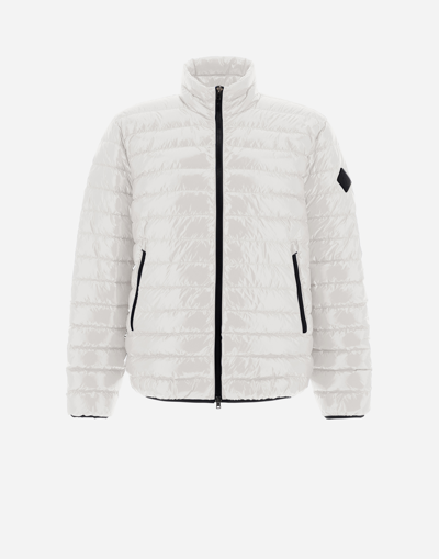 Bomber jacket made from our iconic gloss, an extremely shiny lacquer-effect material that brings out the garment's radiant colours and modern style. Water-resistant and finished with modern graphic details, this piece provides a signature Herno update for any city dweller's wardrobe. Regular fit High collar Long sleeves Two-way zip fastening Zipped pockets Stretchy hems Down-padded H patch on the sleeve Performance: Water-repellent treatment