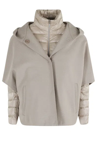 Experience sophistication with this Herno down coat in a refined Chantilly hue. The design includes a removable quilted layer and a luxurious wool hood, along with flush side pockets and a classic front button closure. This versatile piece provides a regular fit, blending elegance with practicality. Removable quilted layer Luxurious wool hood Flush side pockets Classic front button closure Regular fit