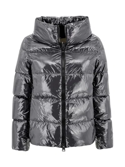 Cape made from iconic gloss fabric, whose lacquered effect brings out the radiance and modern style of the garment's colours. Water-resistant and boasting a functional modern shape, this garment will give your city wardrobe that Herno-signature upgrade. Regular fit High collar Two-way zip fastening Press stud-fastened pockets Goose down padding Embroidered logo-branded patch on the back Performance: Water-repellent treatment