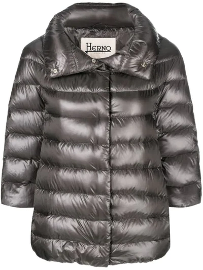 Herno, an Italian outwear brand was established in 1948 by Giuzeppe Marenzi. The brand represents an impossible practicality and a sleek style of Italian fashion, which make is an obvious choice for a cold season. This grey feather down puffer jacket features a funnel neck, a snap button closure, a quilted effect and three-quarter length sleeves.
