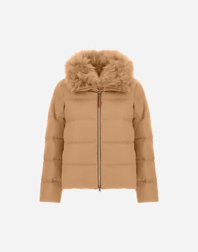 Jacket made from a luxurious blend of fine fibres, combining the softness of cashmere and radiance of silk to create a shiny, rich-looking fabric. Finished with eco-friendly, water-repellent, PFC-free treatment. Comfortable and versatile, this piece is finished with soft down padding and a fur-covered high collar. For an iconic touch, the look is customised with details in monogram fabric: made using a fine jacquard technique, this cotton and nylon fabric is embellished with the Herno logo and finished with a water-repellent coating. Regular fit Striped quilting Feather padding Fur-covered high collar Pockets with invisible zip Two-way zip fastening Made in Italy Performance: Eco-friendly, PFC-free water-repellent treatment