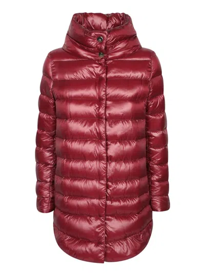 Padded jacket with hood, button front closure, quilted design.The elegant Amelia jacket by Herno in a dazzling bordeaux shade features a sophisticated and snug silhouette with high-quality finishes.