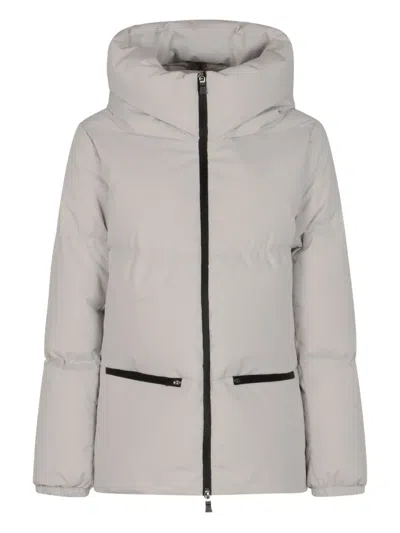 - Grey Herno Padded and quilted down jacket for woman - Hood - Long sleeves with stretch cuffs - Two front zip pockets - One interior zip pocket - Side loged tab at hem - Two side vents at hem - Front zip fastening Composition: 100% Polyester Lining:, 100% Polyamide Trimming:, 72% Polyamide, 28% Elastane Padding:, 80% Down, 20% Feather