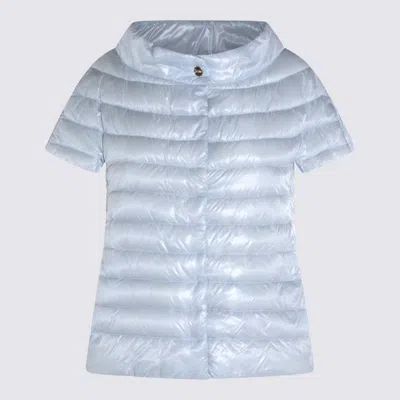 Light blue down jacket from Herno featuring short sleeves, large round collar, button closure, back gold tone logo hardware and regulare vestibility. Composition: _, 100% Polyamide