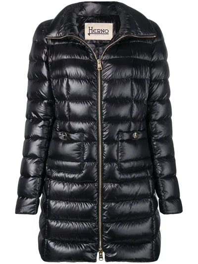 Introducing the Herno Maria Medium Down Jacket, a stylish and practical addition to your outerwear collection. This black quilted jacket features a spread collar, two front pockets, and a zipper closure for added convenience. Made from 100% polyamide with 90% goose down and 10% feathers fill, this jacket is lightweight and warm, perfect for chilly days. The model is 5'9 and is wearing a size 40. Please note that size selections are European, so be sure to reference the size chart for US conversions. Hand wash only. Imported. Add this timeless piece to your wardrobe for a versatile and fashionable look.