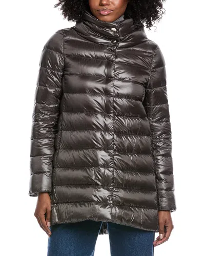 Introducing the Herno Medium Down Jacket, a stylish and functional outerwear option for women. This quilted jacket features a stand-up collar, two front zippered pockets, and a sleek zipper closure. The lightweight design makes it perfect for transitional weather. The jacket is a rich brown color, with a European size chart provided for easy size selection. The model is 5'9 and is wearing a size 40, with measurements that may vary slightly by size. Made from 100% polyamide for the main and lining, with trimming in 60% cotton and 40% acetate. The fill consists of 90% goose down and 10% feathers for ultimate warmth. Hand wash only and imported for quality craftsmanship. Add this Herno Medium Down Jacket to your wardrobe for a stylish and practical option for the season.