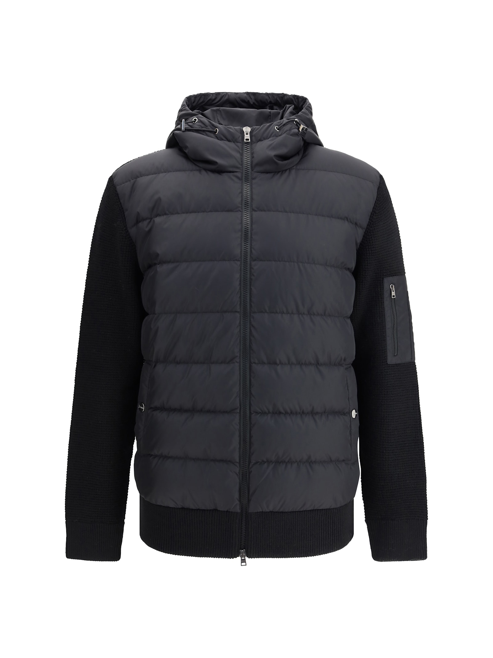 HERNO Men Quilted Bomber Jacket With Wool Sleeves In Black