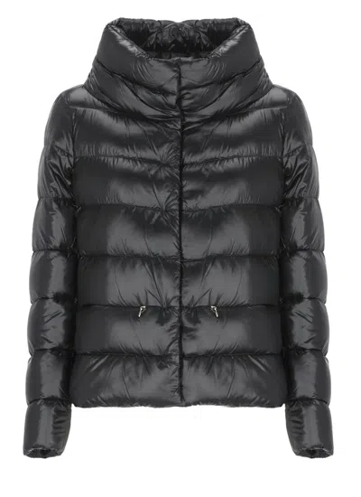 HERNO Puffy Black Coat With Glossy Finish And High Collar