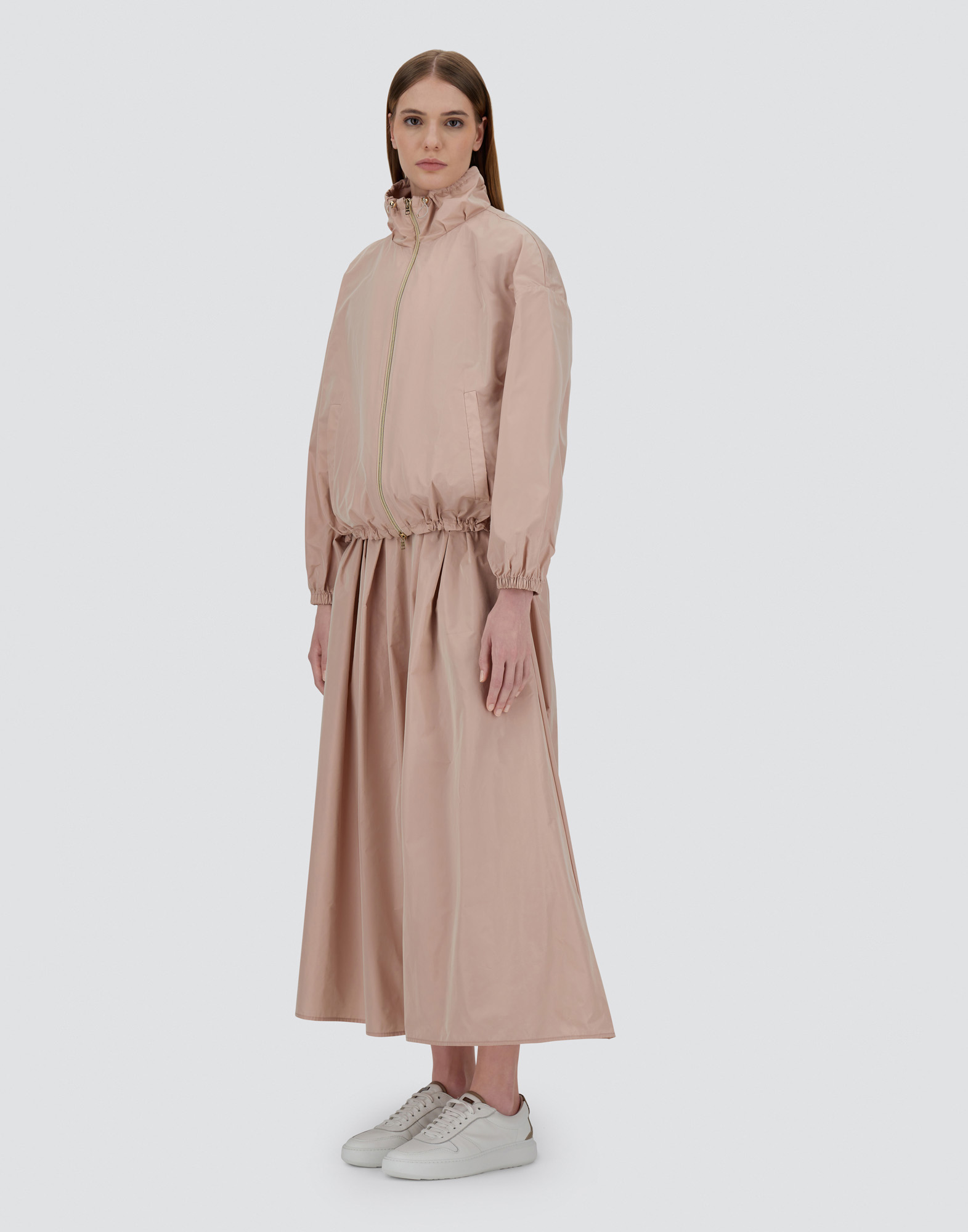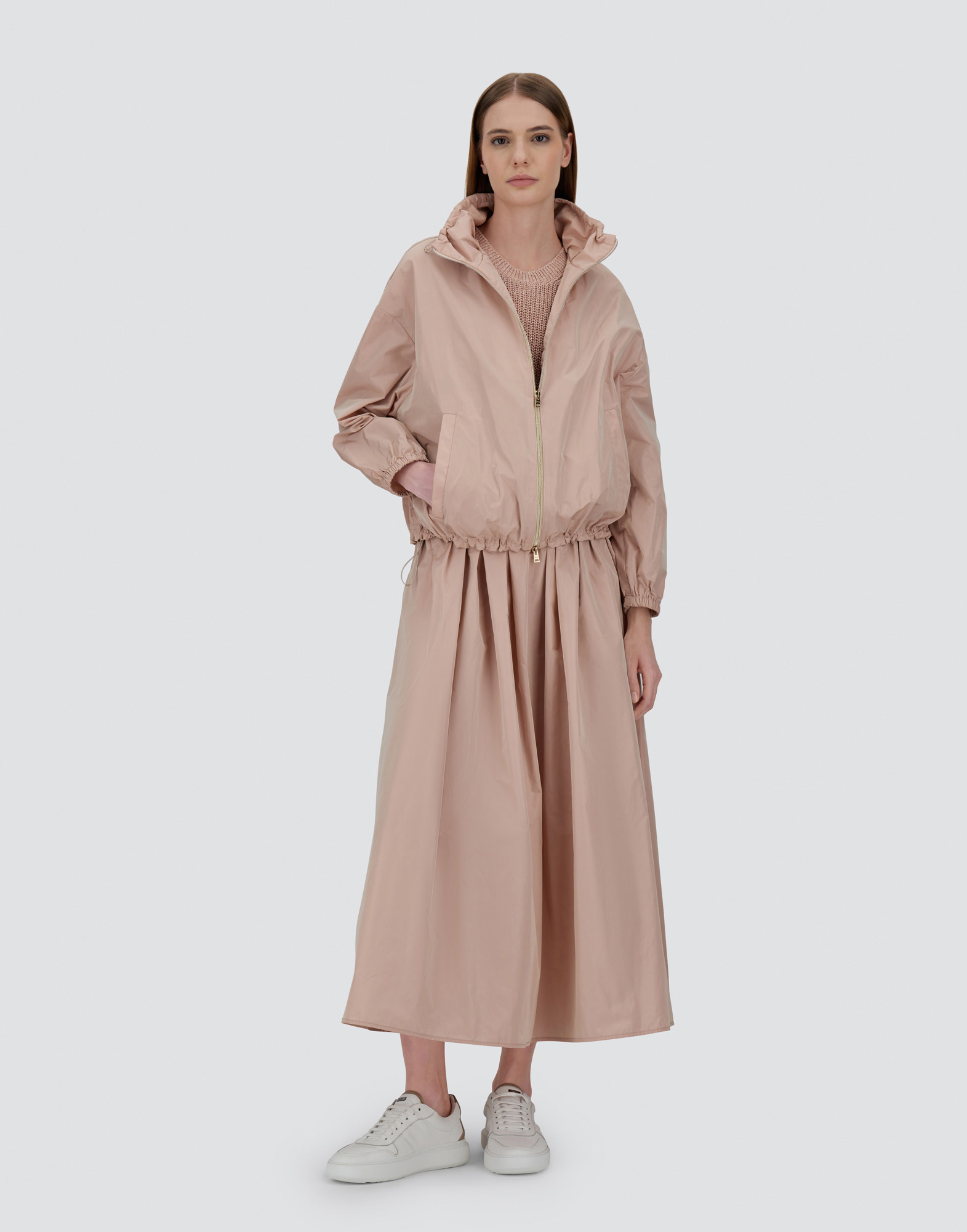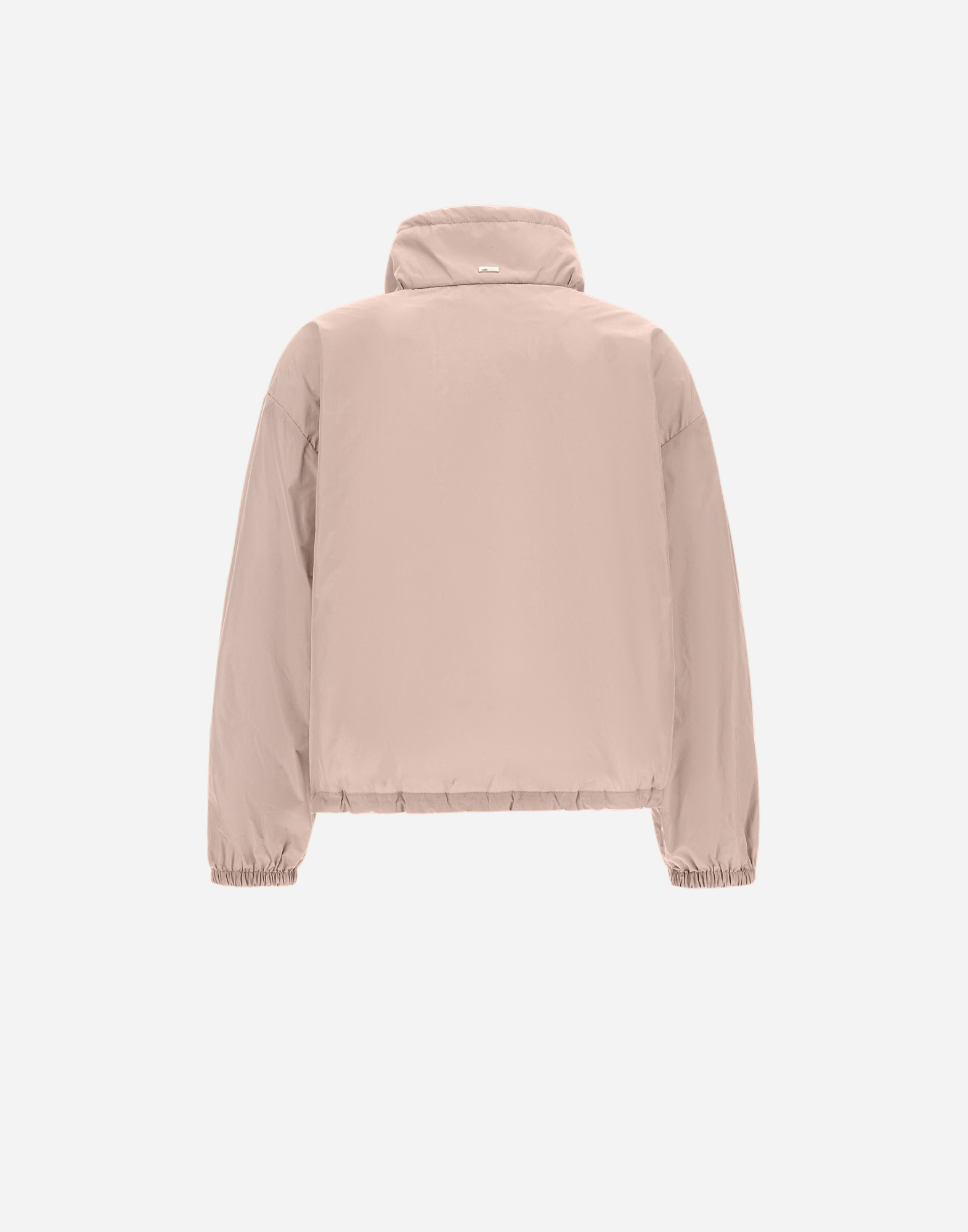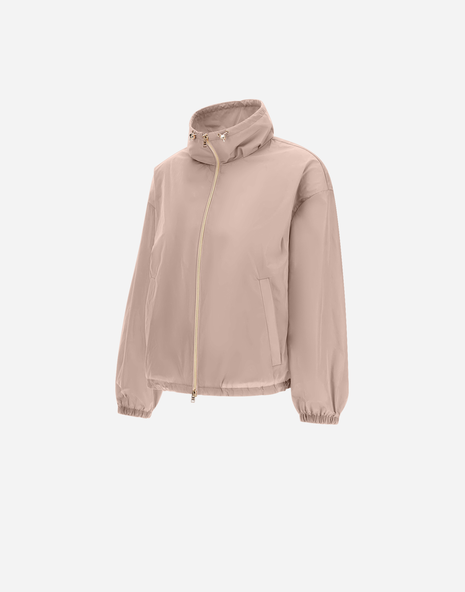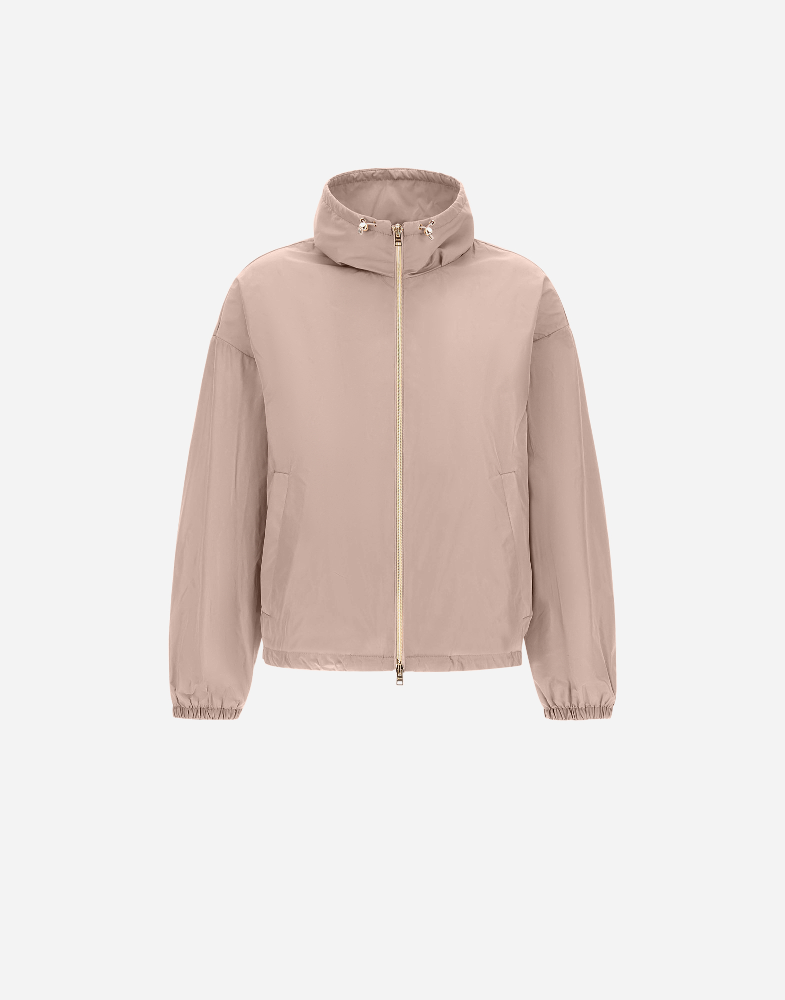 Jacket in taffeta with water-repellent treatment applied to the yarn and slightly shimmering finish that has a sporty yet elegant appeal. Melding style and functionality to perfection, this model has a sophisticated design tailor-made for city looks and is perfect for layered looks thanks to its relaxed fit. Relaxed fit High collar with drawstring Elasticated cuffs Side pockets with press stud Elastic band with drawstring at the bottom Metal Herno logo on the back Two-way zip fastening Made in Italy Performance: Water-repellent treatment