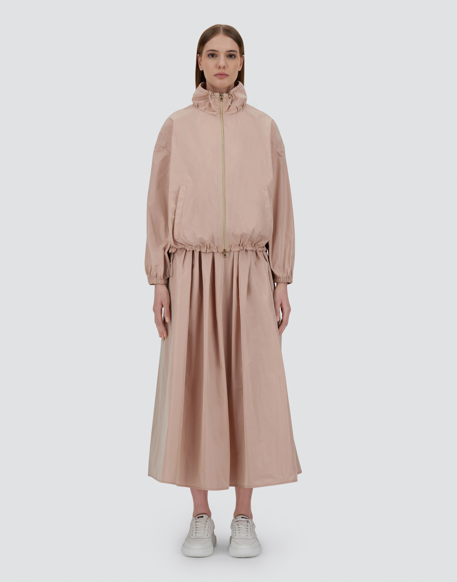 Jacket in taffeta with water-repellent treatment applied to the yarn and slightly shimmering finish that has a sporty yet elegant appeal. Melding style and functionality to perfection, this model has a sophisticated design tailor-made for city looks and is perfect for layered looks thanks to its relaxed fit. Relaxed fit High collar with drawstring Elasticated cuffs Side pockets with press stud Elastic band with drawstring at the bottom Metal Herno logo on the back Two-way zip fastening Made in Italy Performance: Water-repellent treatment