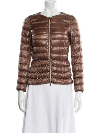 Herno Nylon Down Jacket Brown Sequin Embellishments & Collarless Zip Pockets & Zip Closure Fit: Jackets by Herno typically fit true to size. | Herno Nylon Down Jacket in Brown, Women's US4, IT40 | S