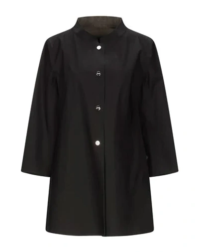 HERNO Overcoats. techno fabric, no appliqués, basic solid color, single-breasted, snap buttons fastening, round collar, multipockets, long sleeves, unlined, stretch. 97% Cotton, 3% Elastane