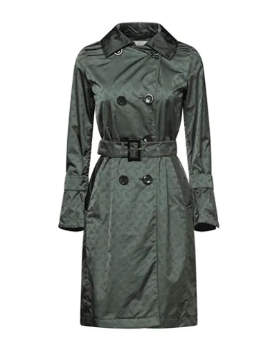 techno fabric, brand logo, belt, logo design, lapel collar, double-breasted, long sleeves, partially lined interior, button closing, multipockets, trench , Color: Military green , Size: 6