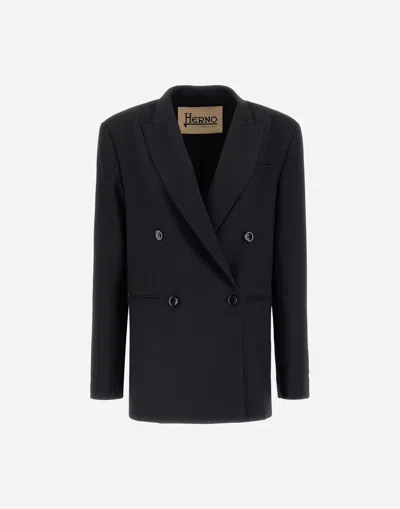 Blazer in wool-blend gabardine with very fluid and stretchy texture. A tailored classic, reworked by Herno with an oversized fit that delivers fresh proportions. The result is a contemporary garment that can be worn with matching trousers or with jeans for a more casual look. Oversized fit Peak lapels Small welt pocket Side welt pockets Buttoned cuffs Slit at the back Metal Herno logo on the back Double-breasted button fastening Lined