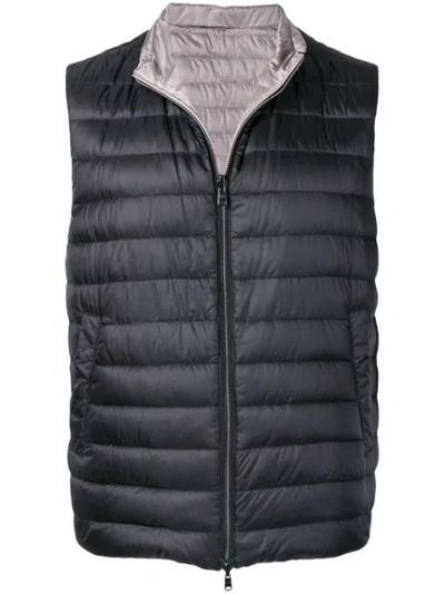 Founded in 1948, Herno’s revolutionary production processes operate alongside traditional methods and the result is an inimitable mix of materials with a unique contemporary feel. This black feather down padded gilet from Herno features a funnel neck, a front zip fastening and side pockets.