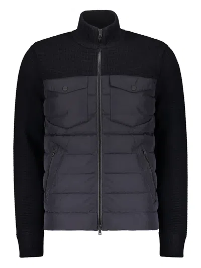 dark blue padded front panels zip front fastening zip pockets flap pockets