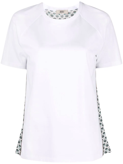 White cotton rear-pattern T-shirt from HERNO featuring geometric panelled design, round neck, short sleeves and high-low hem.