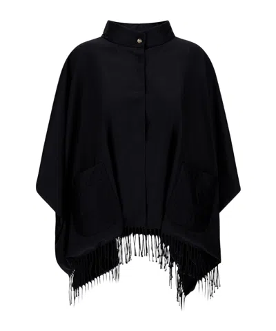 High collar, kimono sleeves, patch pockets on the sides, tassels at the hem, metal Herno logo on the back and covered snaps.