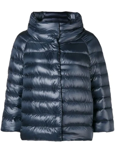Blue Sofia puffer jacket from Herno featuring three-quarter length sleeves.