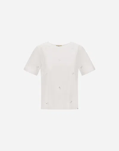 T-shirt in compact stretch cotton interlock jersey containing a small amount of elastane for greater comfort when worn. A sophisticated staple you can wear under a blazer or pair with jeans to give any look a touch of Herno-signature quiet luxury. Regular fit Crew neck Short sleeves Embroidered H lettering Metal Herno logo on the back