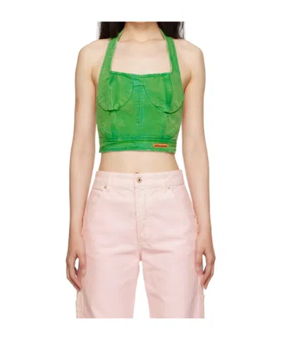HERON PRESTON Distressed Cotton Corset Top In Green