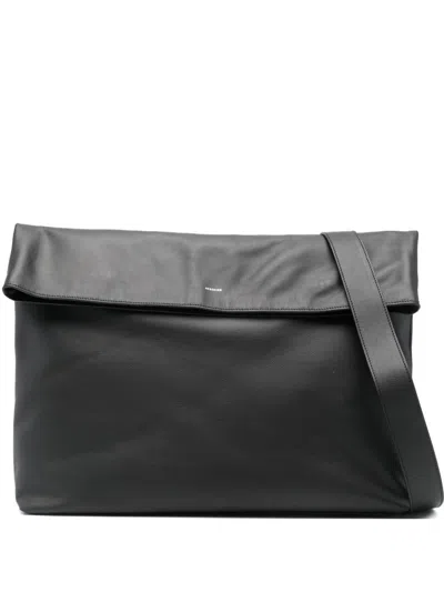 black leather foldover top shoulder strap internal zip-fastening pocket