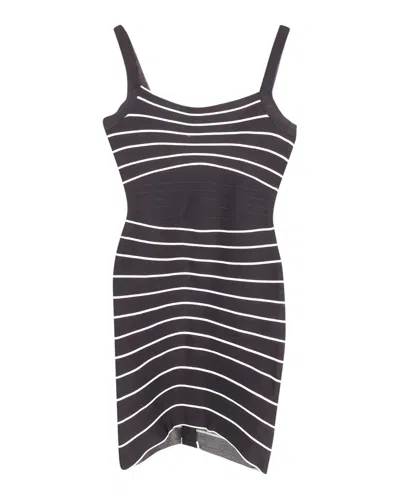 HERVE LEGER Striped Mini Dress In Black Print Rayon