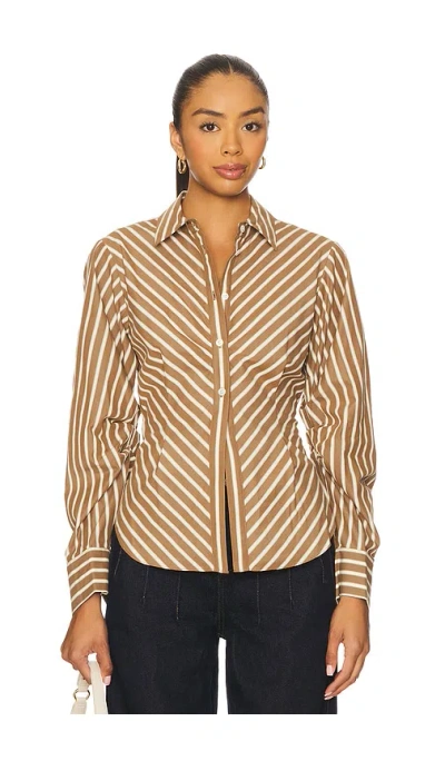 HEVRON Drexel Shirt in Cognac. - size S (also in L, M, XL, XS) HEVRON Drexel Shirt in Cognac. - size S (also in L, M, XL, XS) 100% cotton. Dry clean only. Front button closure. Button cuffs. V-neck design. Lightweight poplin fabric. HEVR-WS17. HF25T021.