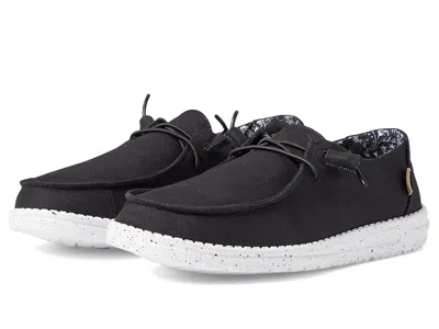 Hey Dude Wendy Basic Wide - Women's Shoes : Black Odyssey : Feel relaxed on your busiest day by wearing the Hey Dude Wendy Basic Slip-On Casual Shoes. ; Cotton canvas upper. ; Contrasting, printed-cotton lining. ; Leather-lined, removable insole. ; Easy slip-on style with elasticized lace panel. ; Brand woven label on the quarter. ; Round moc toe design. ; Flex Fold ultralight outsole. ; Imported. | Hey Dude Wendy Basic Wide Women's Shoes Black Odyssey : 5 W