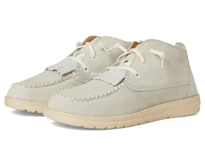 Hey Dude Wendy Mid Elevated - Women's Flat Shoes : Ivory : Strut your stuff with comfortable confidence wearing the Hey Dude Wendy Mid Elevated shoes. Crafted from premium suede, these beauties boast a chic mid-height collar with a playful fringe kiltie on the front. Their embroidered stitching adds a touch of elegance, making them perfect for taking your look to new heights. These lace-up shoes feature a Flex Fold design that supports healthy feet with their unique shape, giving complete freedom of movement. The laces are made using an elastic material that allows them to flex with the foot, resulting in a shoe that fits more uniformly. They are made of a removable EVA insole and cotton lining. Step up your style game with these sneakers. ; Round toe shape. ; Rubber outsole. ; Imported. Measurements: ; Heel Height: 1 in ; Weight: 12 oz ; Product measurements were taken using size 7, width M. Please note that measurements may vary by size. | Hey Dude Wendy Mid Elevated Women's Flat Shoes Ivory : 11 M, Suede