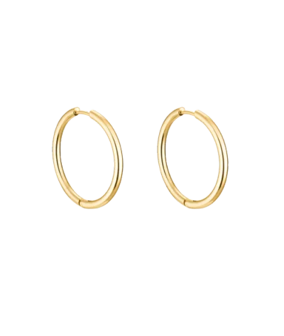 Small Thin Ruby Earrings: The perfect earrings to create a statement. Simple but bold and thin, these are the Small Thin Ruby earrings. Size & Weight: Outside diameter - 3cm / 1.18'' Inside diameter 2.55cm / 1'' Weight 2.7g / 0.006lb These are featherweight earrings - so light, you'll forget you are wearing them. Composition: Metal: Stainless steel Coating: 14K gold PVD durable, waterproof