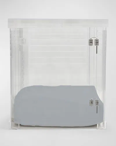 Meet the revolutionary Clear Acrylic Dog Crate to Gate, a 3in1 clear acrylic pet crate that is also a modern lucite side table and a clear acrylic, freestanding pet gate! This totally clear dog crate gives your dog a clear view without unfriendly metal or plastic bars and is calming for the pet, not to mention for you. Includes top and bottom trays, 2 hinged walls (one wall features an integrated door with a metal latch), and 2 slideon hinges Smoothly polished, horizontal air openings on all 4 sides allow perfect air circulation The 2 metal latches provide security and style For easy transport or storage, disassemble the crate and place the wall panels inside your top and bottom trays Approx. 40"L x 31"W x 32"T Item Weight (Lbs.): 58.0 Wipe clean Made in USA