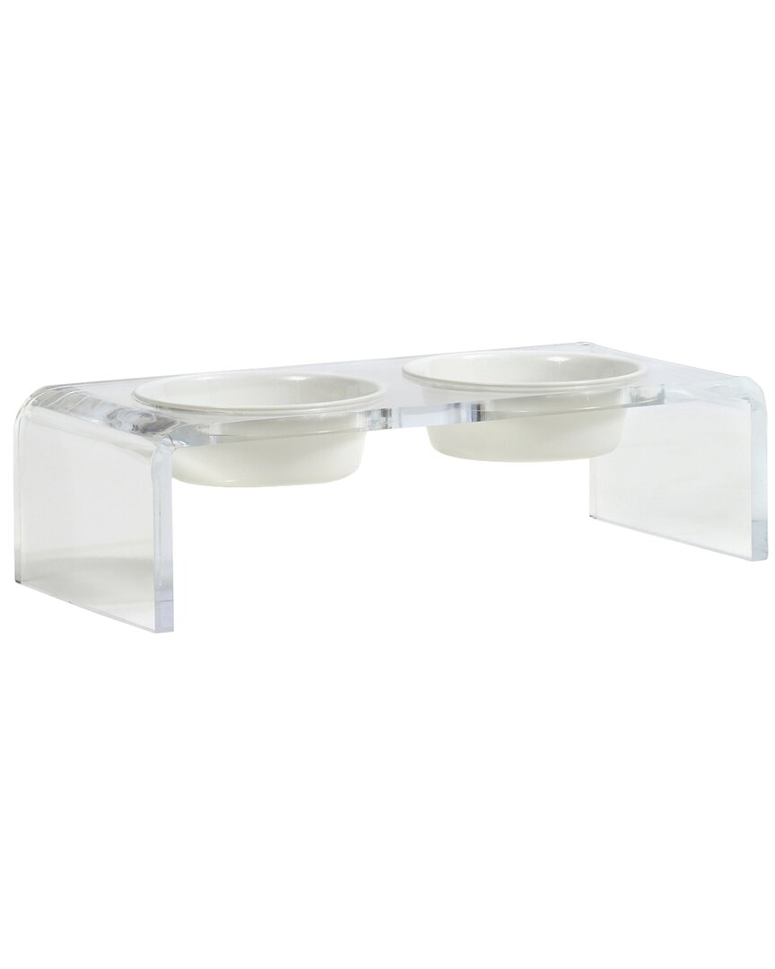 Small Clear Double Bowl Pet Feeder With White Bowls