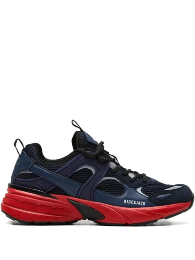 blue mesh panels rubber sole lace-up fastening red detailing logo print