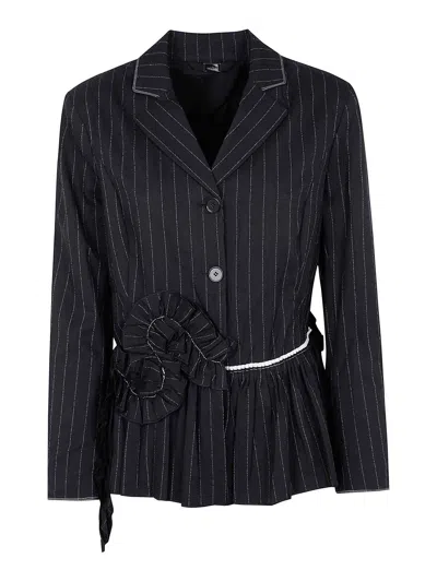 black front button fastening classic lapels long sleeves