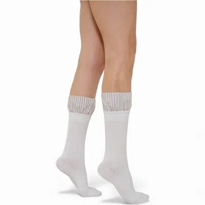 HIGH HEEL JUNGLE BY KATHRYN EISMAN Women's Lauren Pinstripe Cuff Socks White