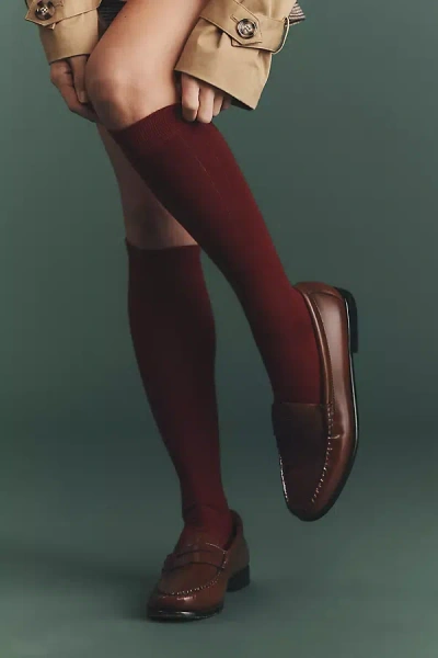 Ribbed Knee-high Socks In Red