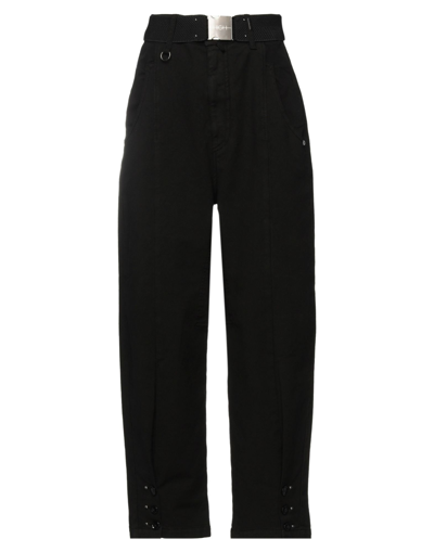 gabardine, brand logo, belt, solid colour with appliqués, high waisted, belt loops, tapered leg, regular fit, 1 button, zipper closure, multipockets, stretch , Color: Black , Size: 8